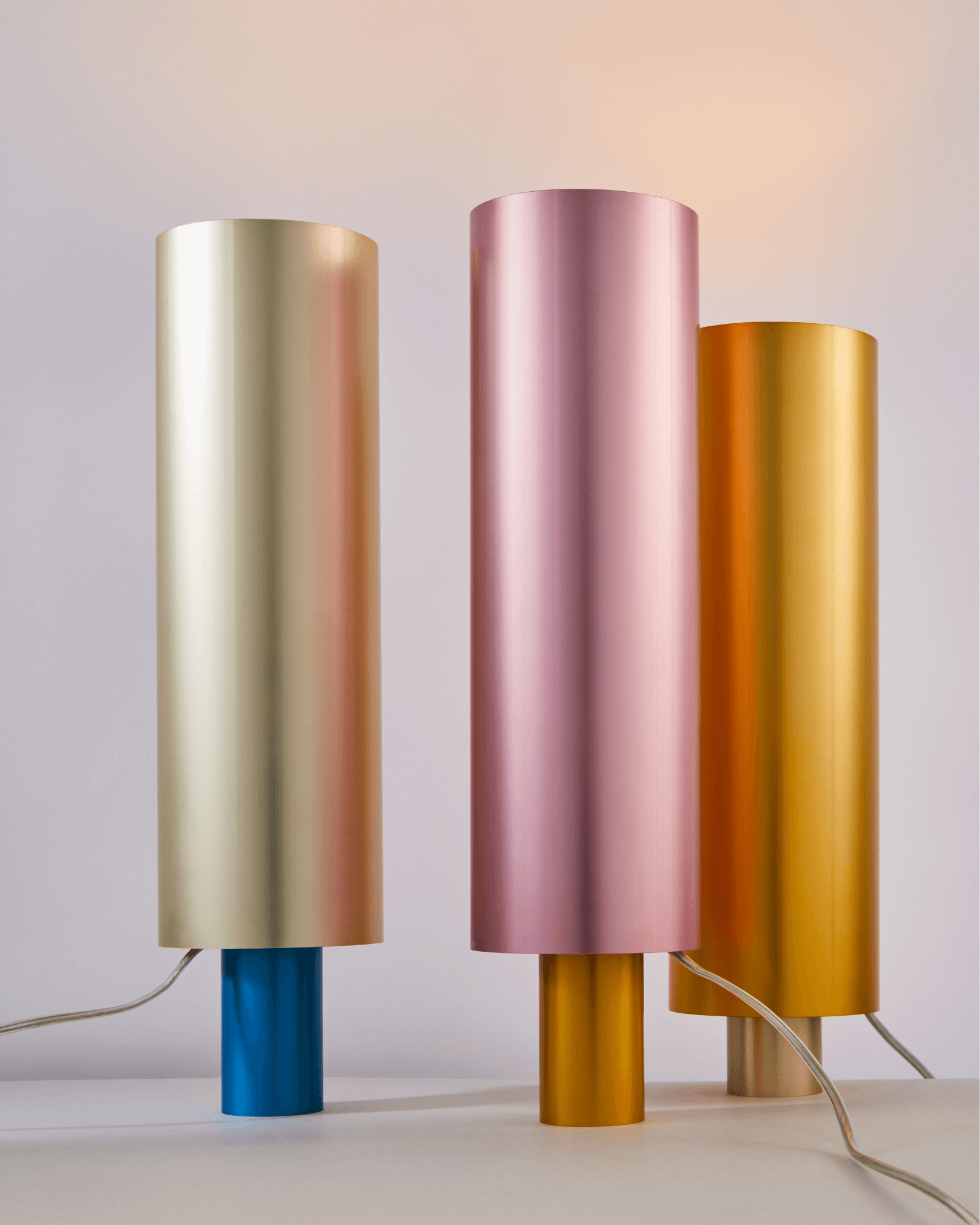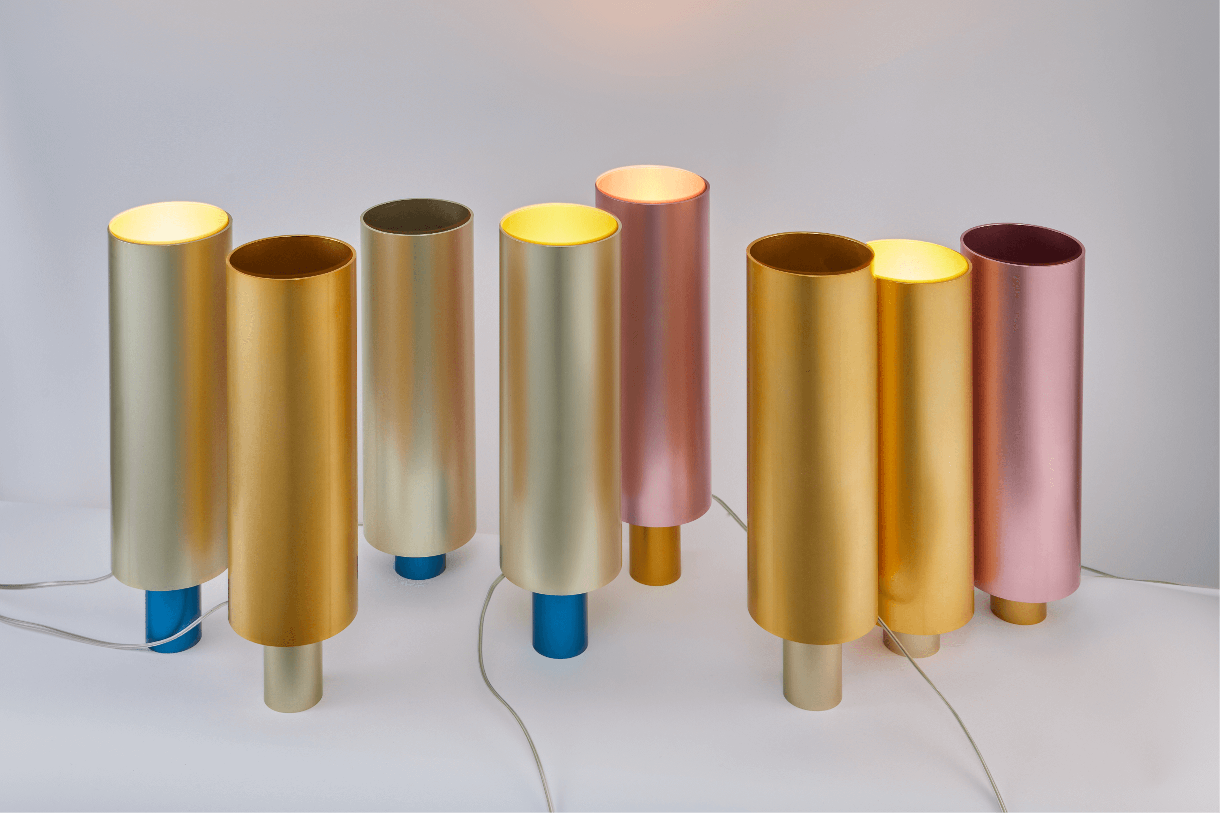 A color and material study with anodised aluminium resulted into a table light. The piece out is highlighting the characteristics of the raw material and can adjusted in height to change how the light reveals. Available in a wide range of colours.