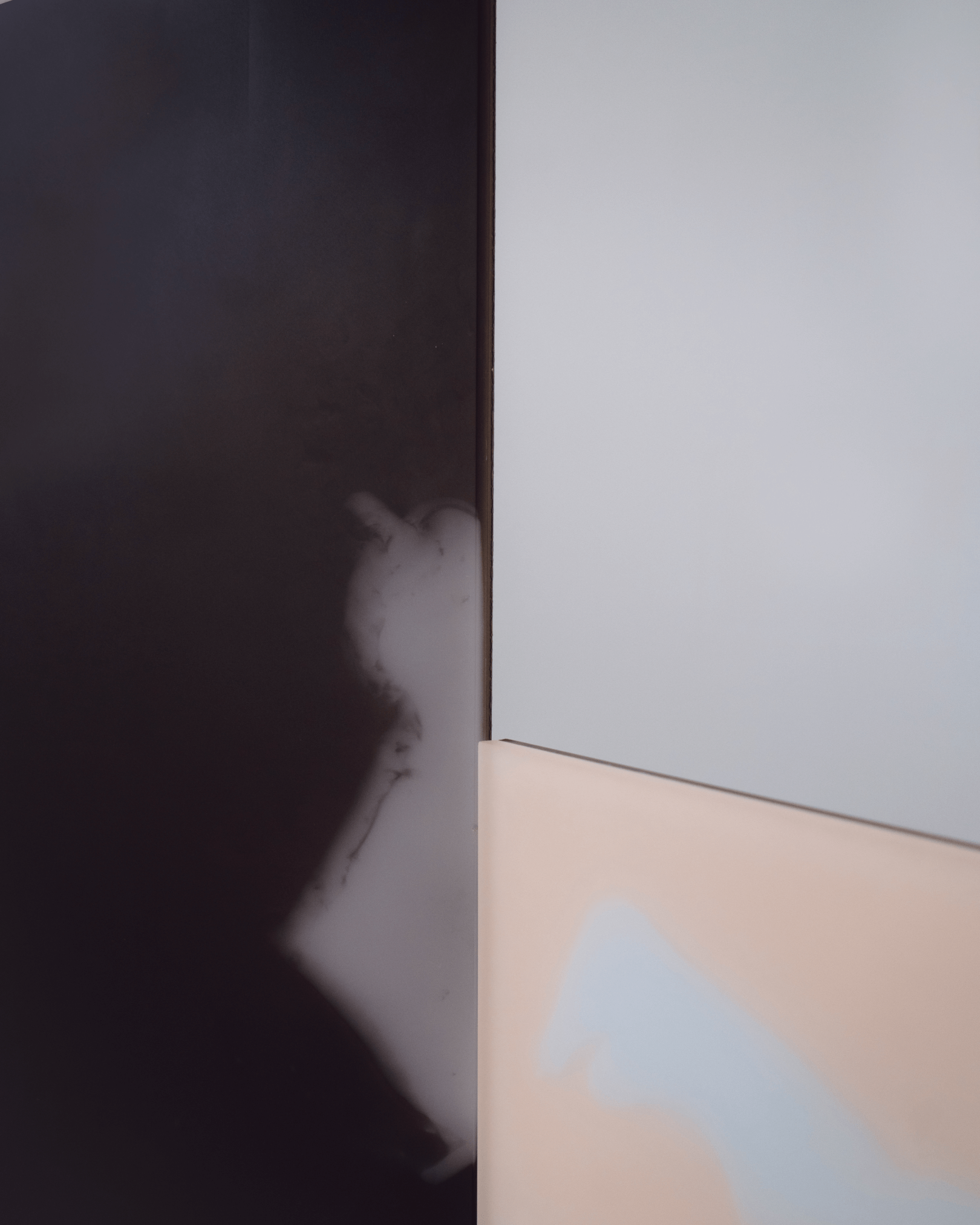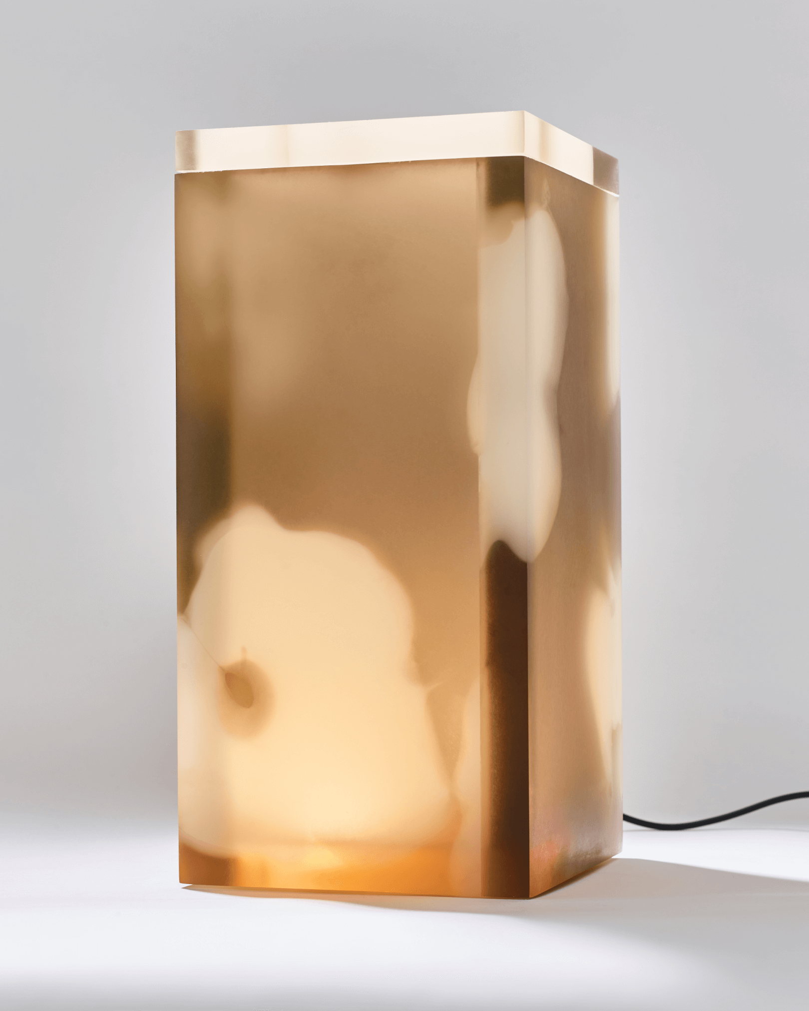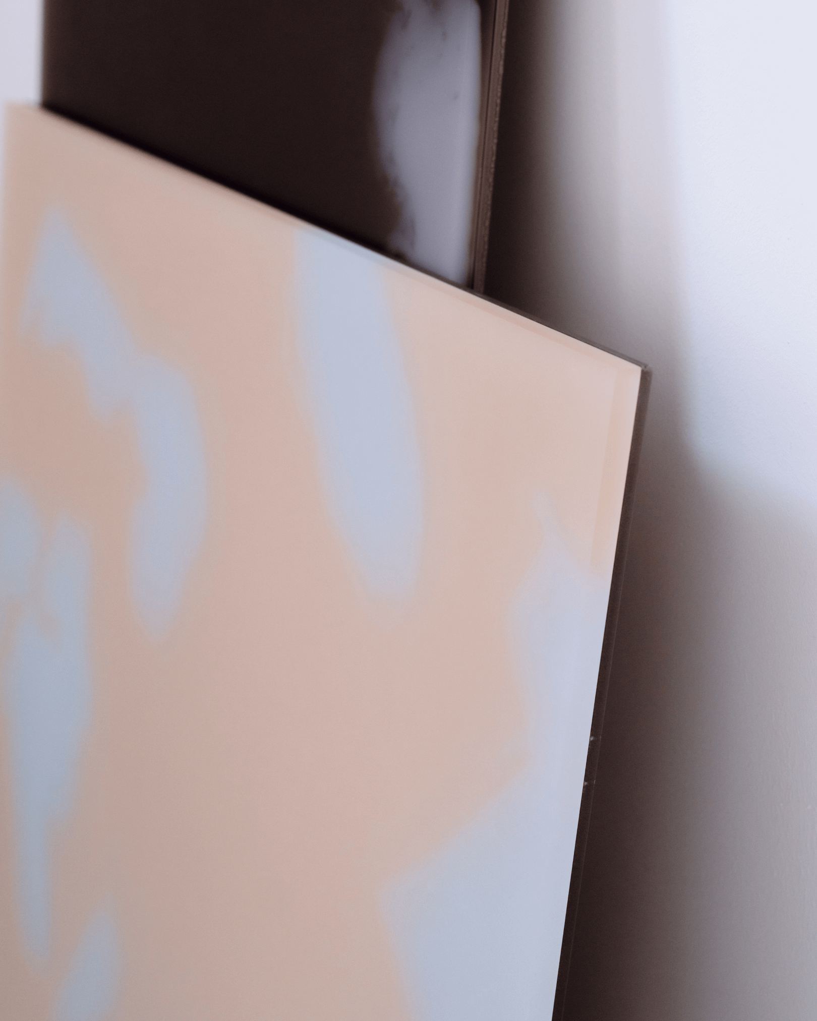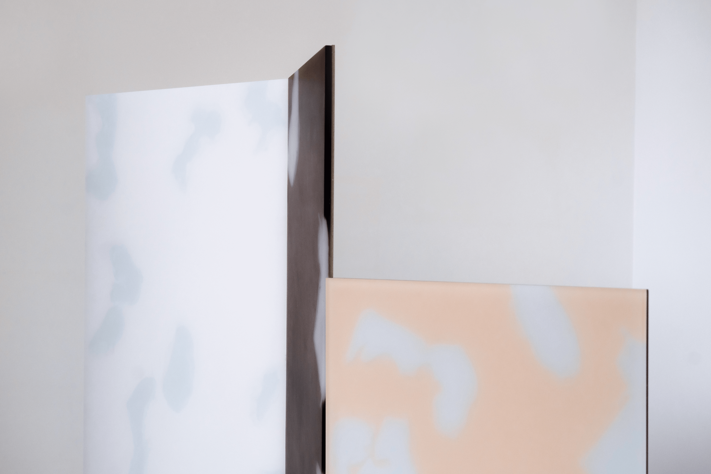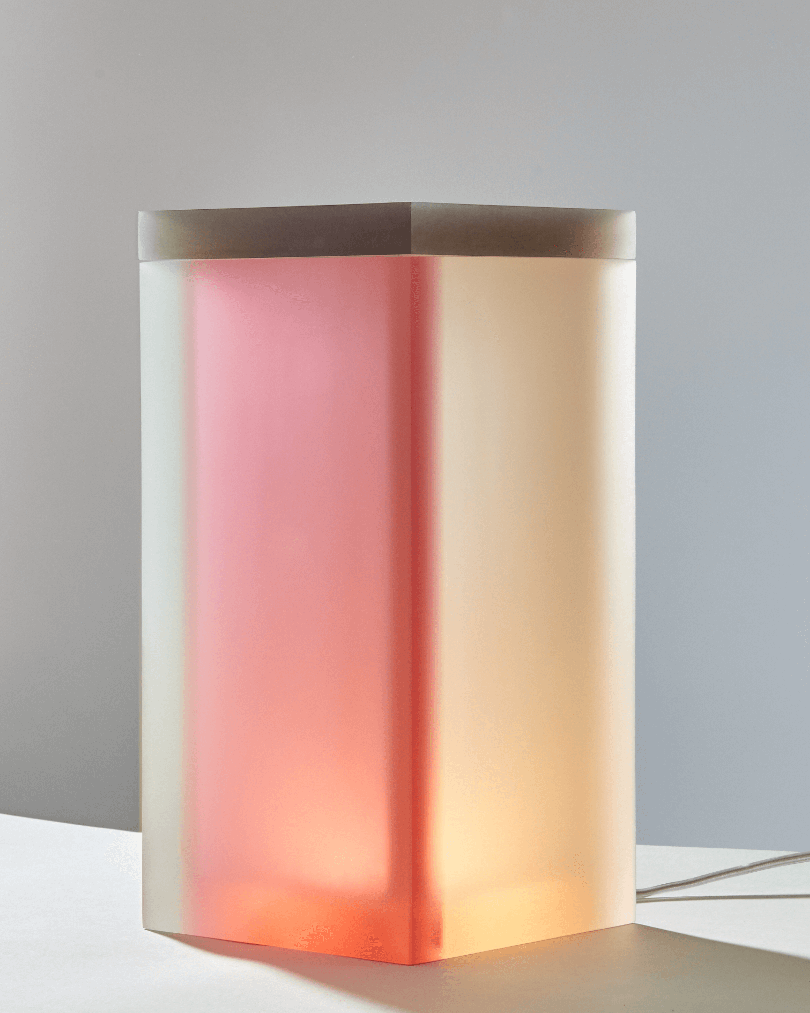 Flower pattern divided in 5 plates, combined in a simple rectangular shape creating different light effects that vary from every angle. Material made with a bespoke liquid resin color blend technique.