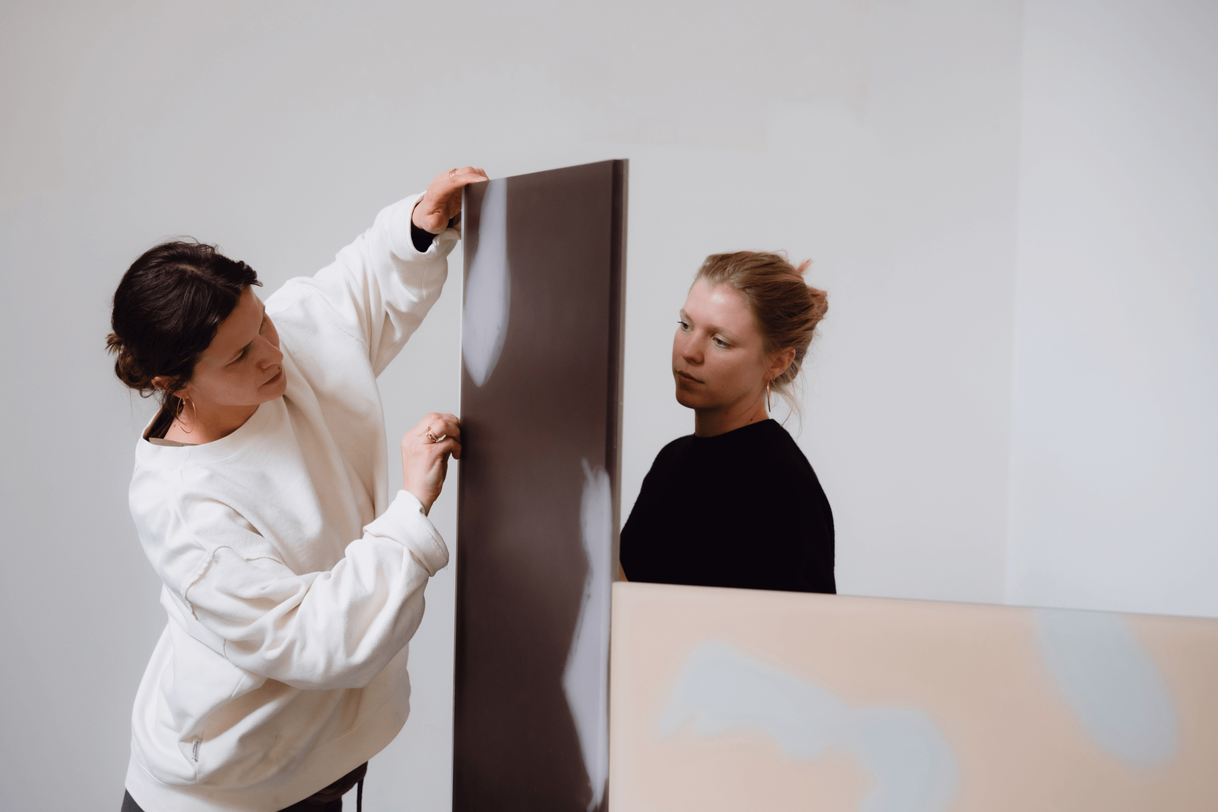 ‘Sitting with’, a see-saw-like bench, is designed in collaboration and for the exhibition ‘I find them really pleasant to hold’ by the Ritsch Sisters at Vasto. It captures the balance between personal expression and shared experience. Through photographs and installations, Anna and Maria Ritsch delve into themes of touch, presence, and identity, examining the act of holding as a dynamic interplay of control and surrender, solitude and connection. Commissioned by Vasto.