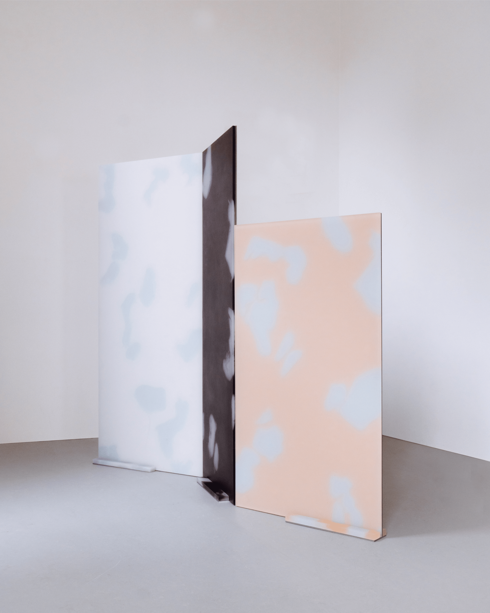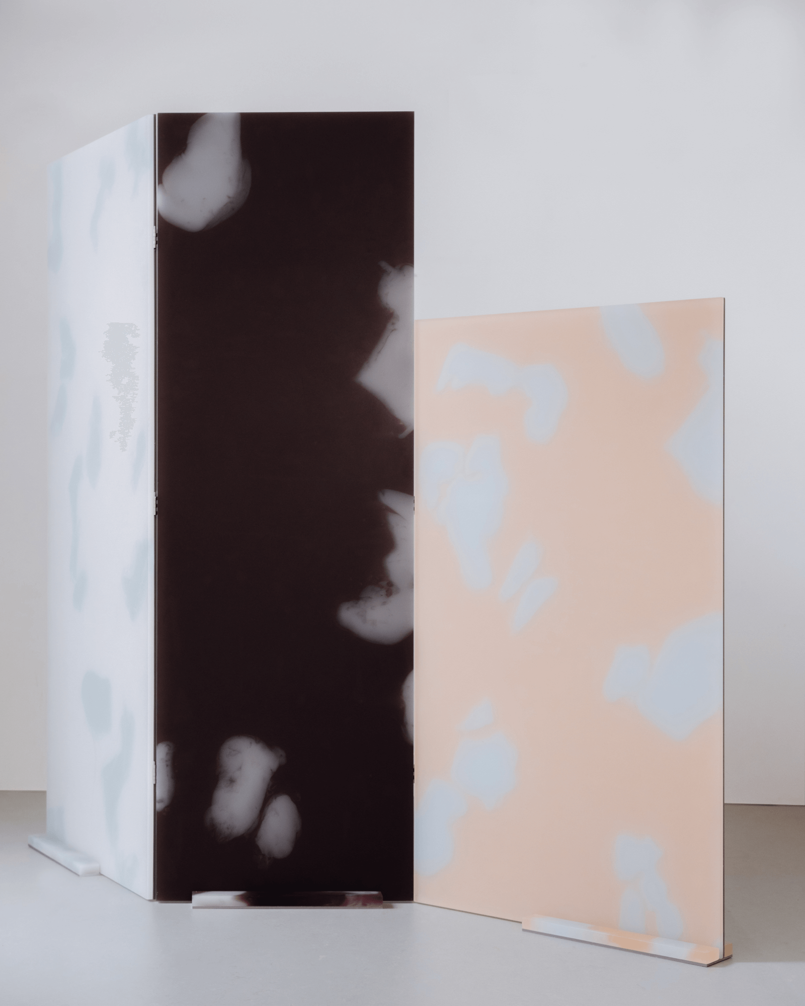 Room divider made out of resin and aluminum. The organic color motifs are a result of material experimentation with liquid resin, molds and different color recipes. Available, contact for more information.