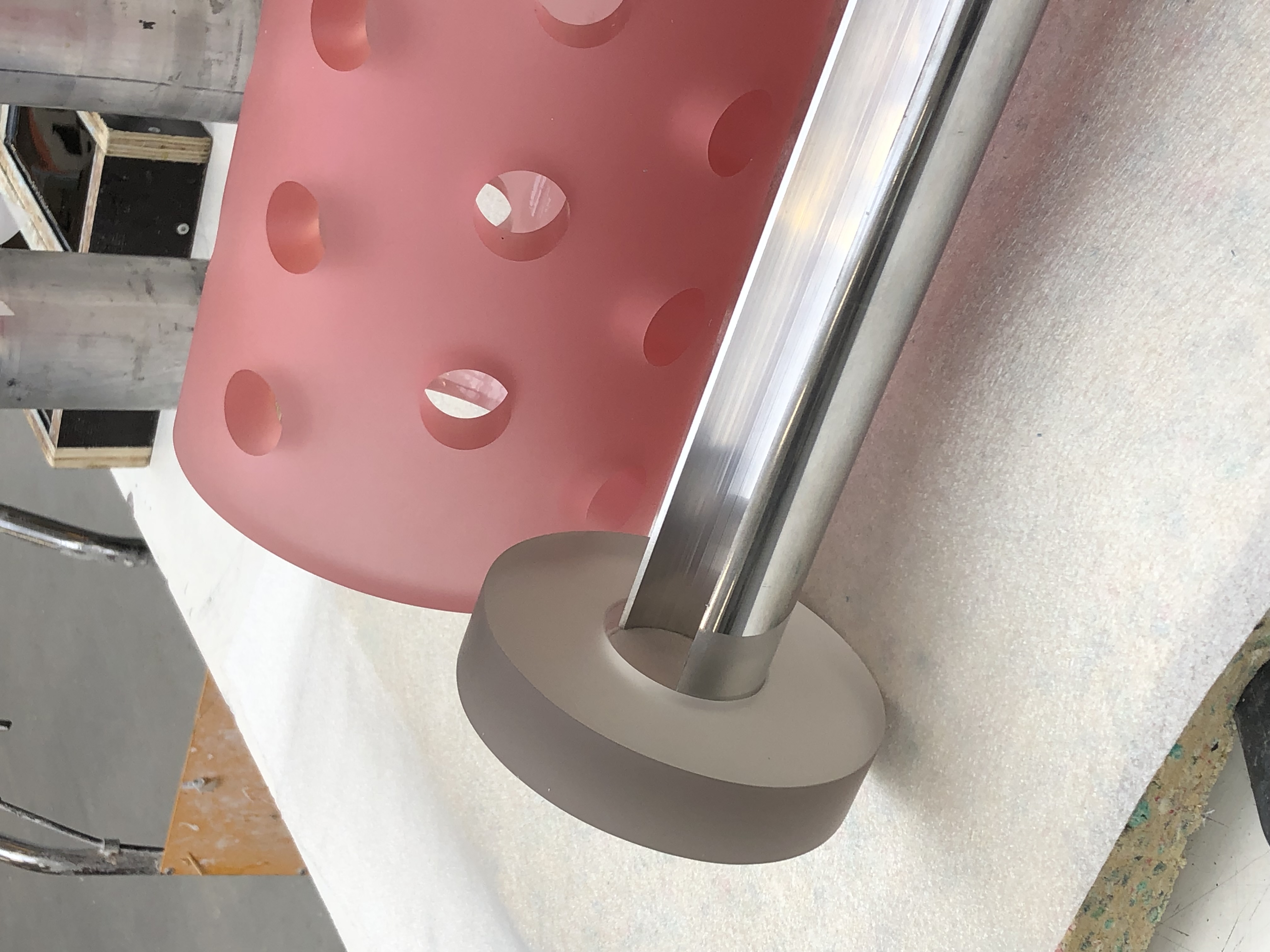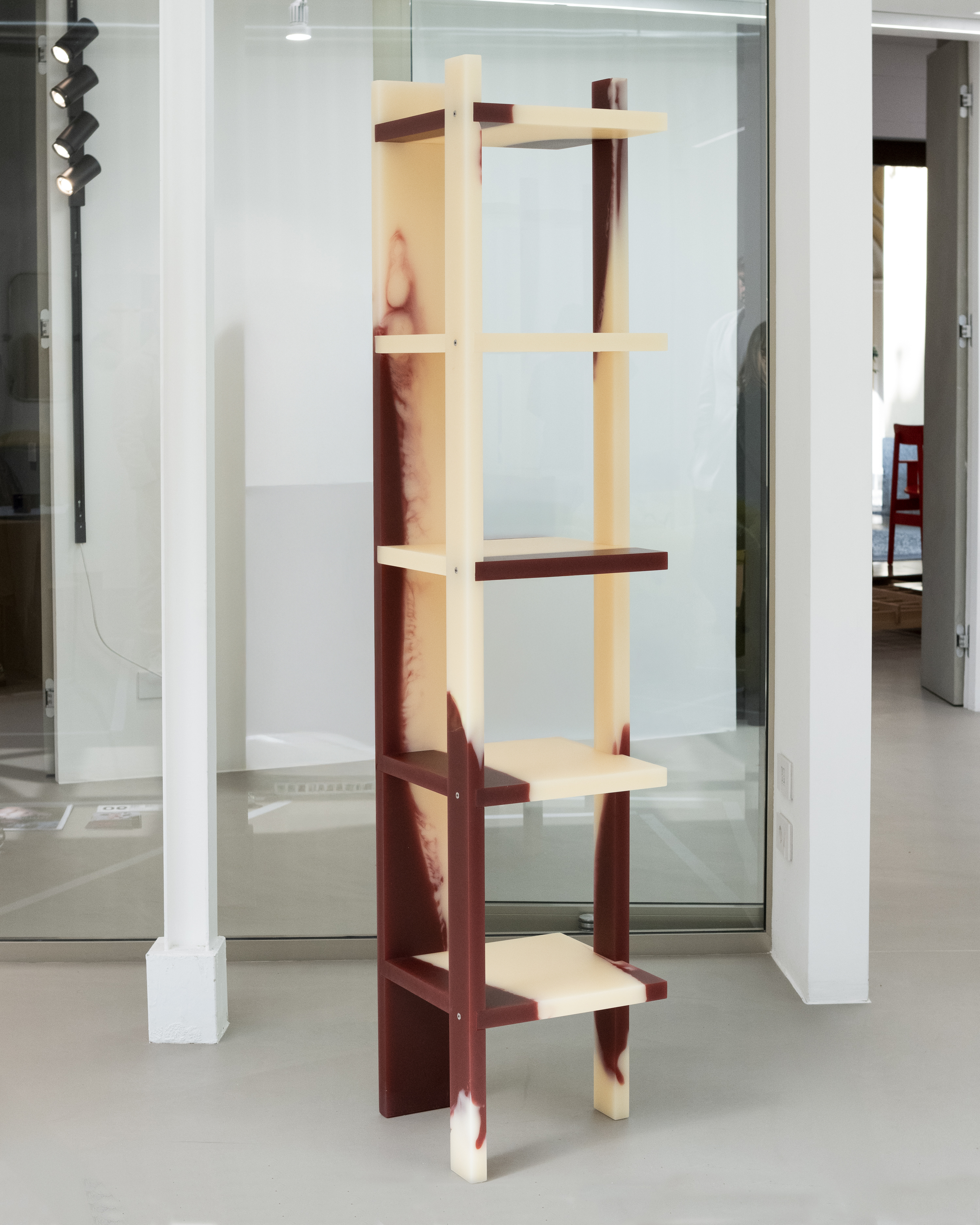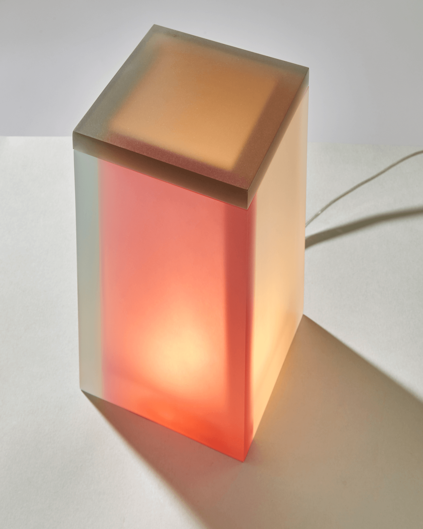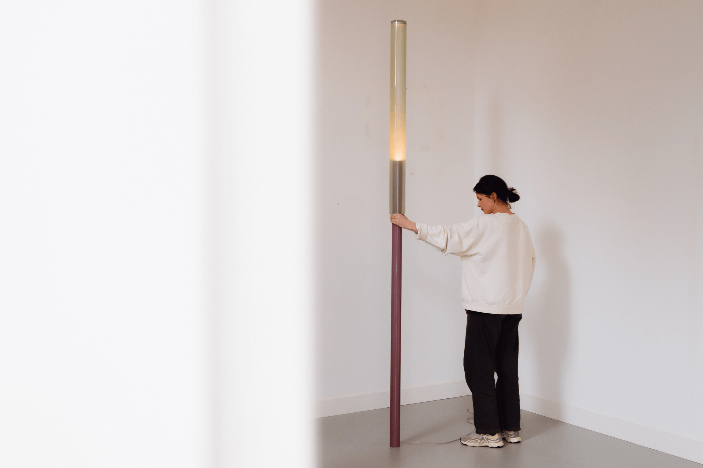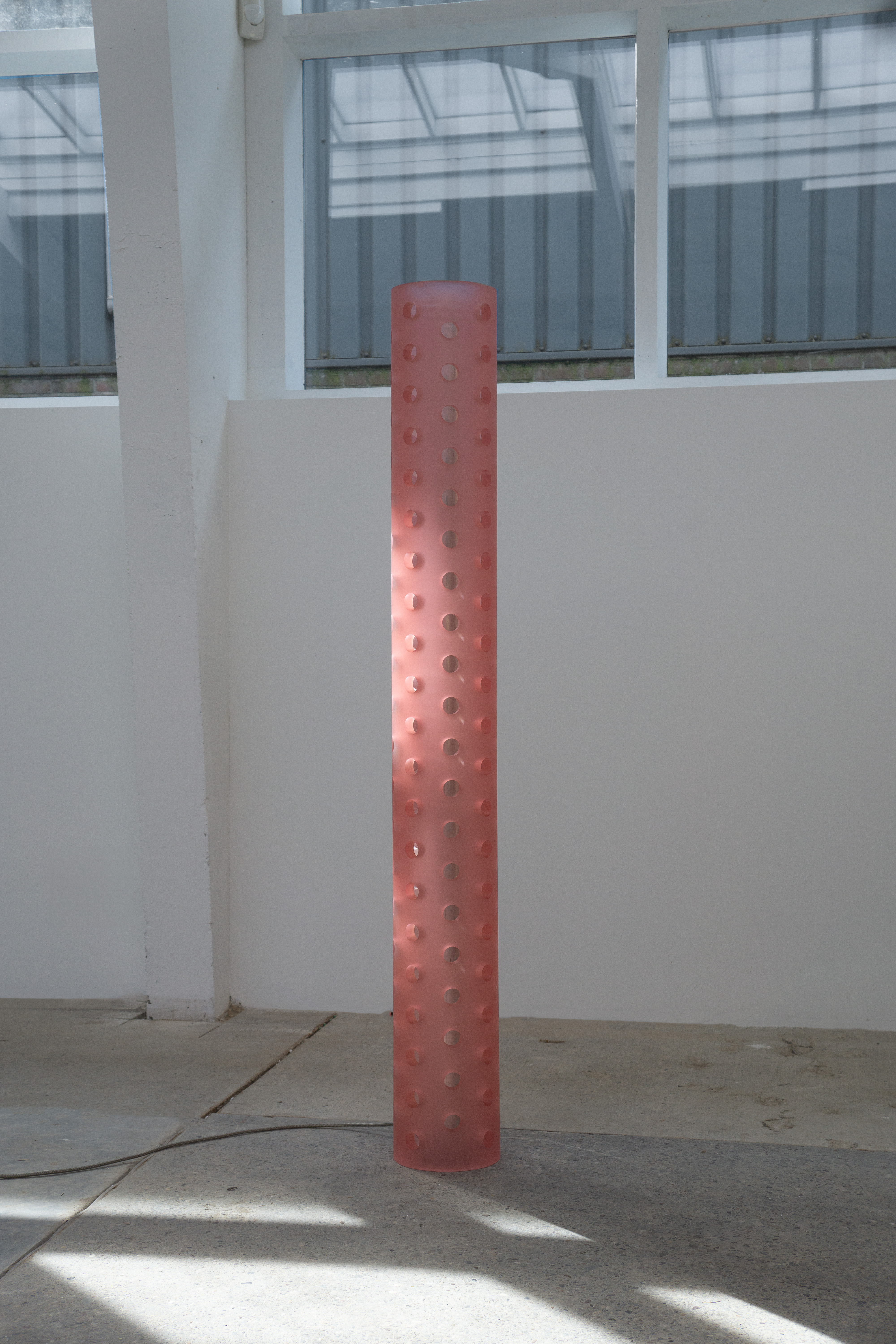 Light sculpture made out of resin emphasising the verticality of a space. Extendable from floor to ceiling. Custom sizes and colour combinations on request.