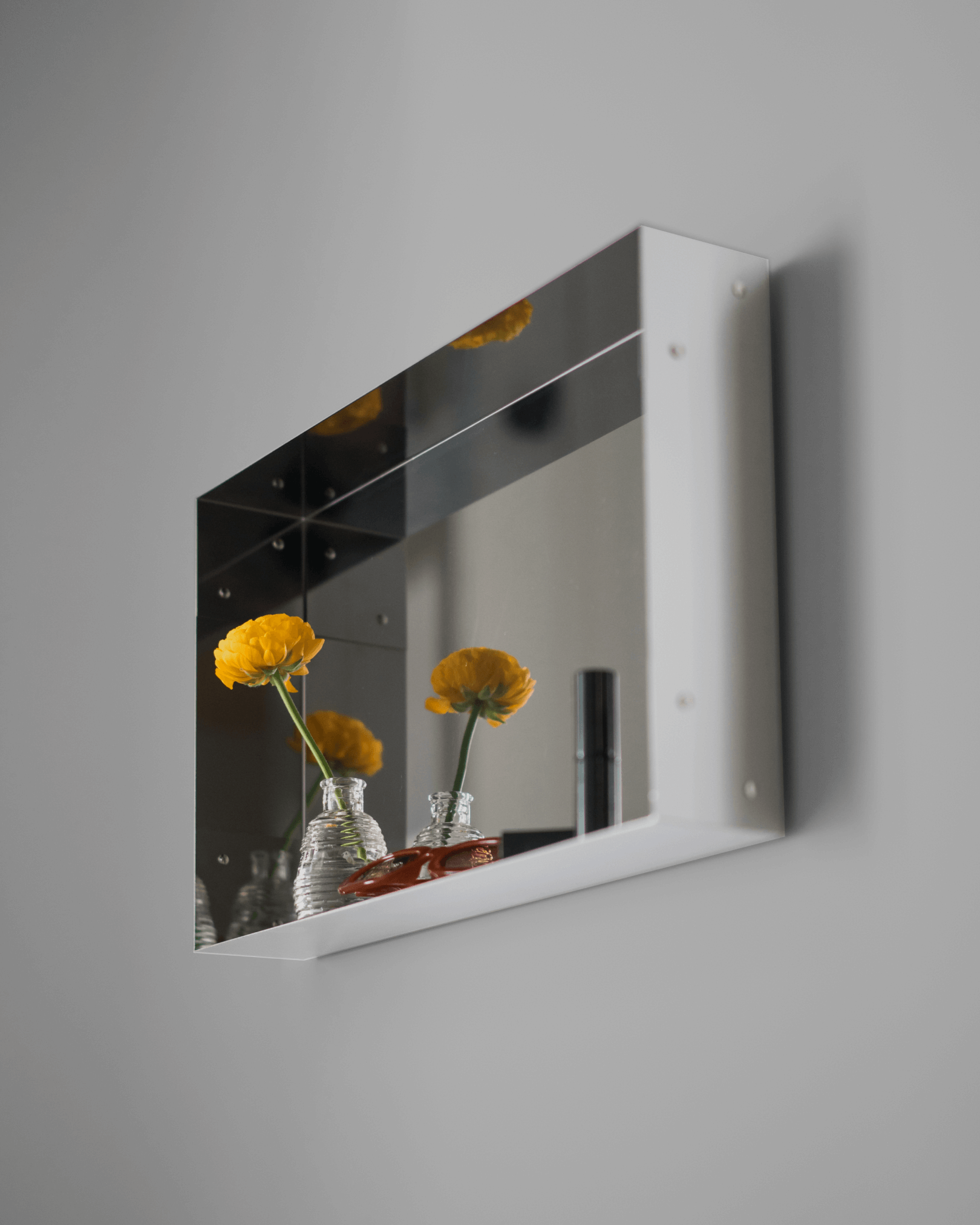 The spring console table and mirror’ produced for tableau's show “DOMESTIC PLEASURES”. The mirror is produced with a floral casted resin setting on top of a polished aluminium finishing to get a contemporary yet warm look and feel. The seemingly simple console is made entirely out of resin and metal bolt assemblies.