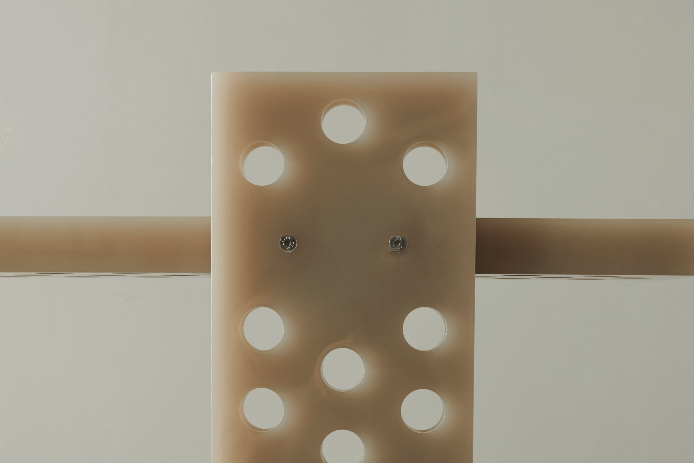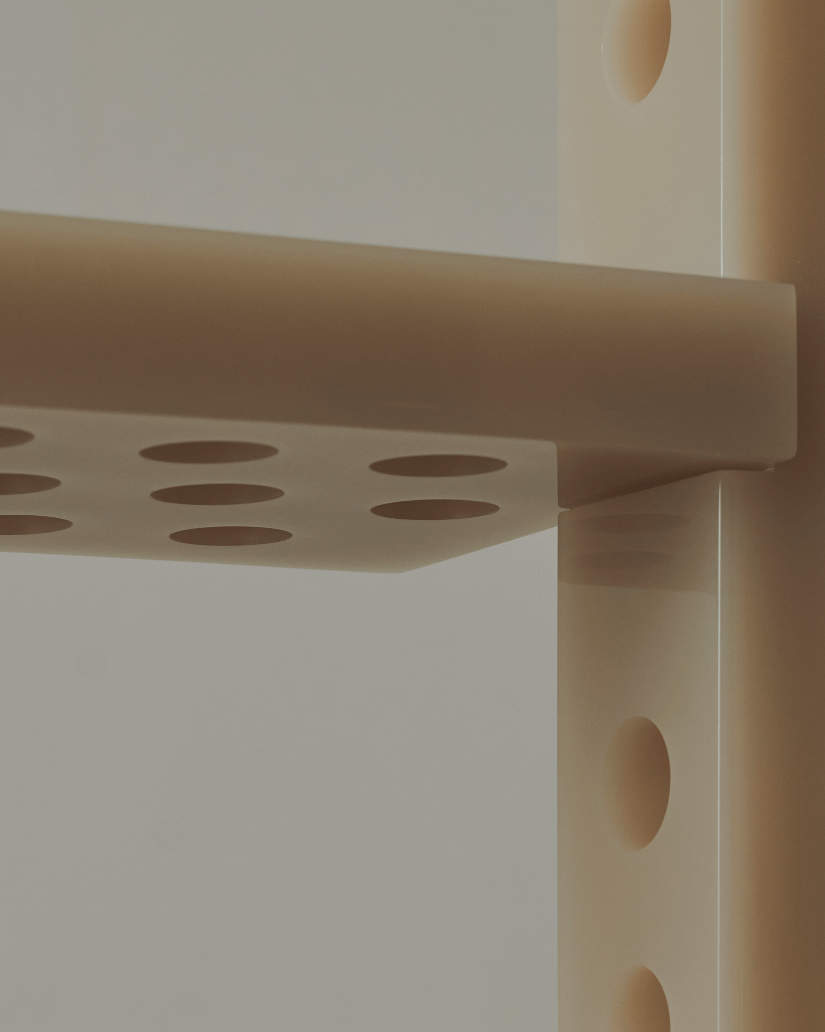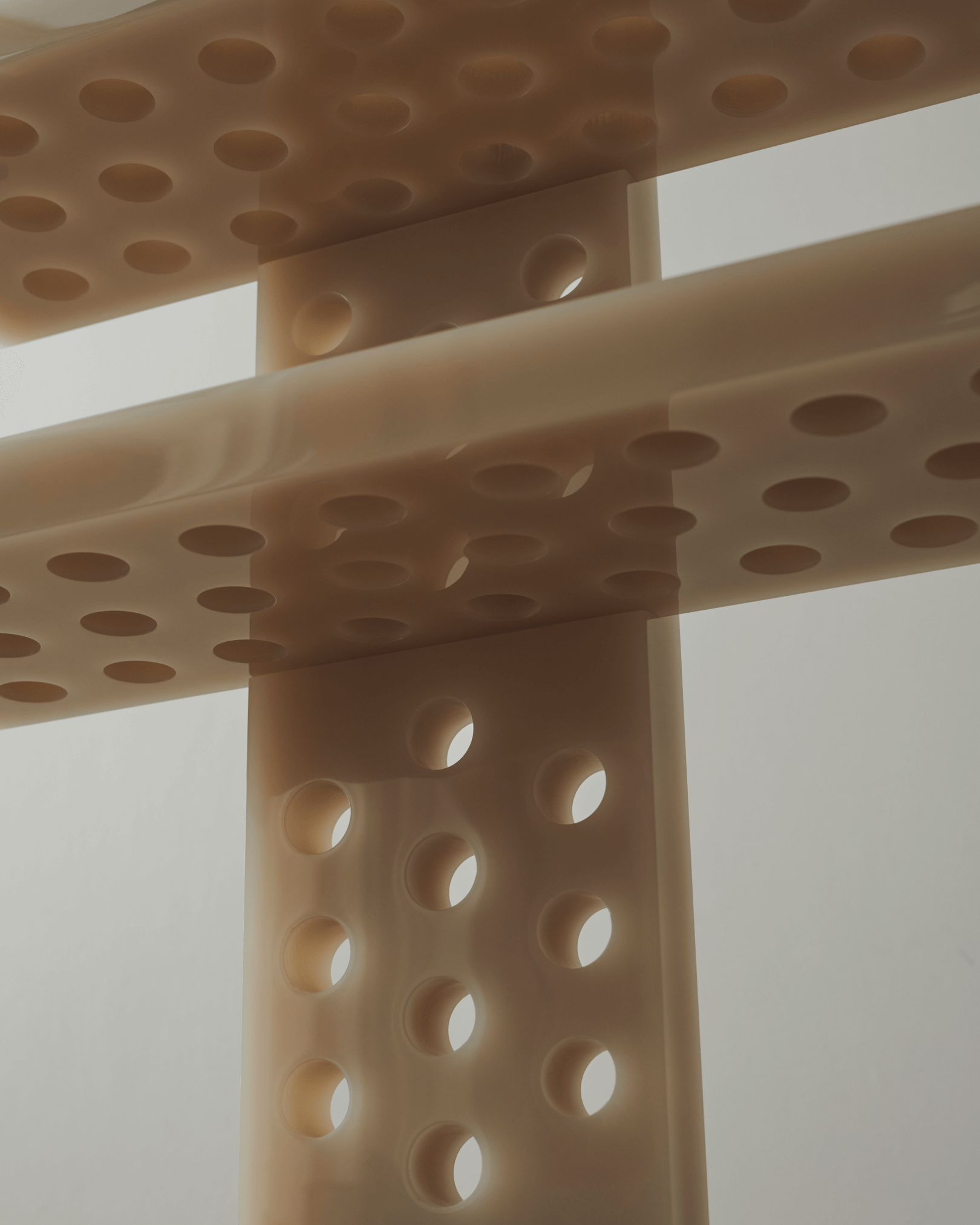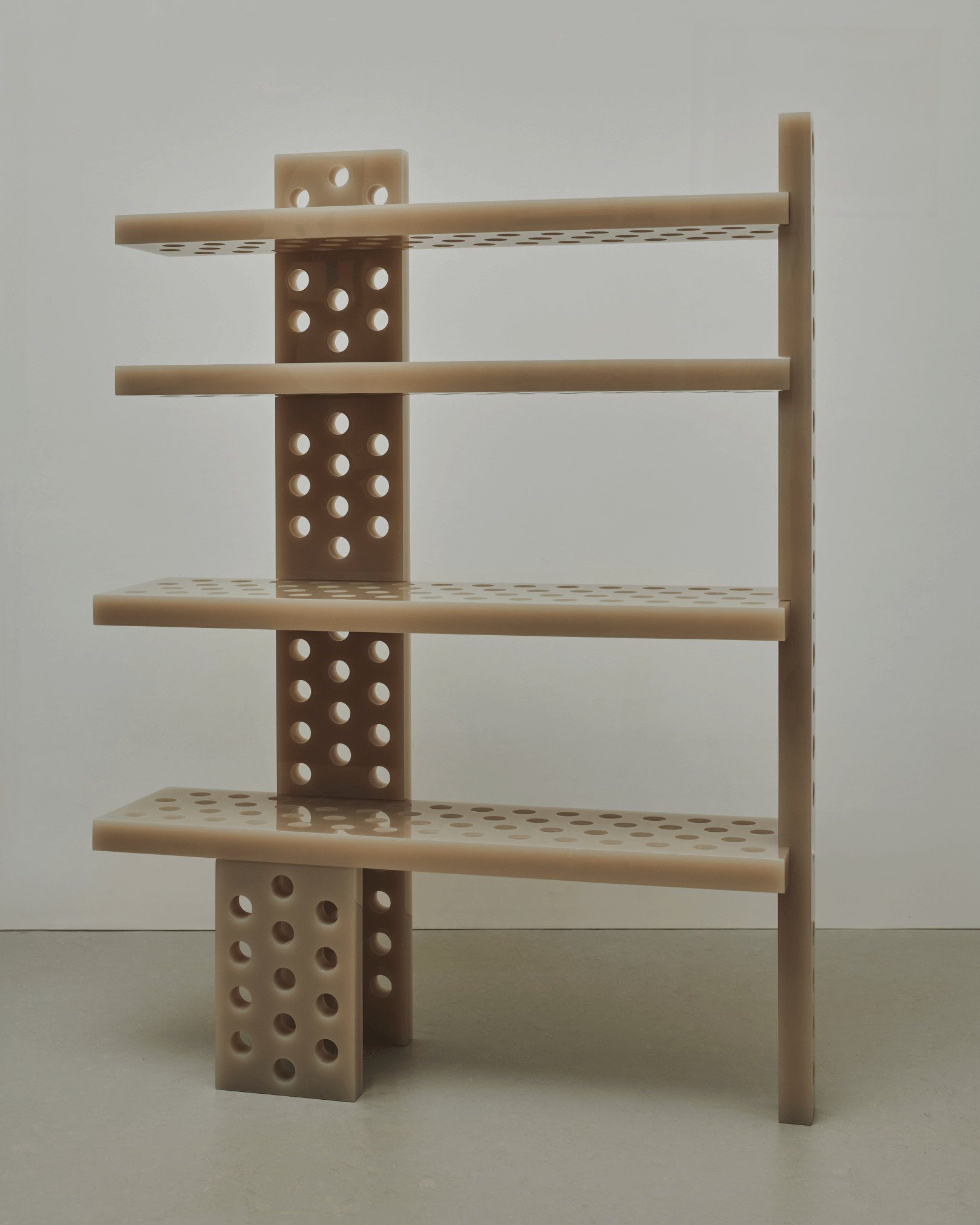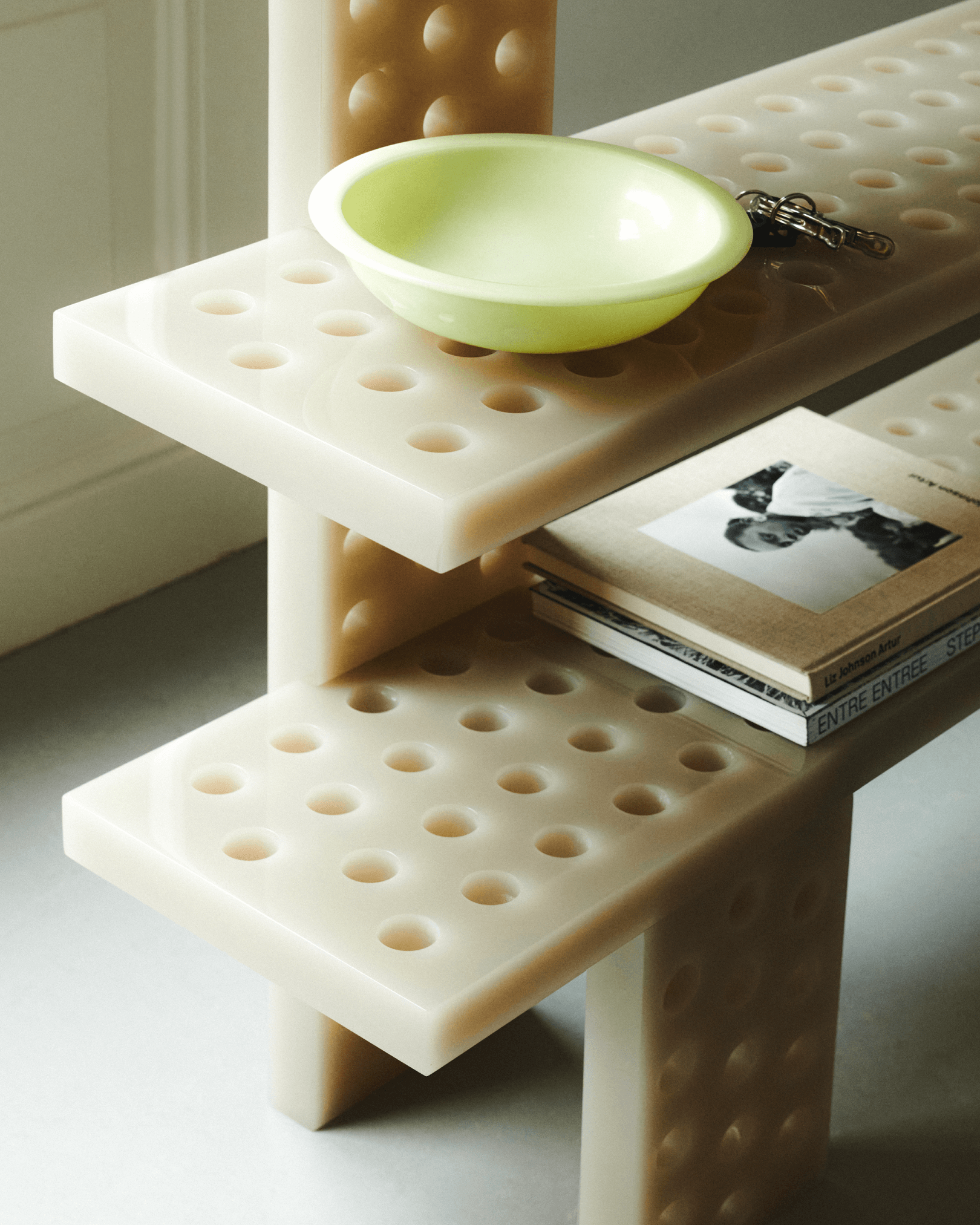 polished and perforated resin console. Unique piece. Size: 90x25x125cm. Custom sizes and colours on request. Contact us for more information.