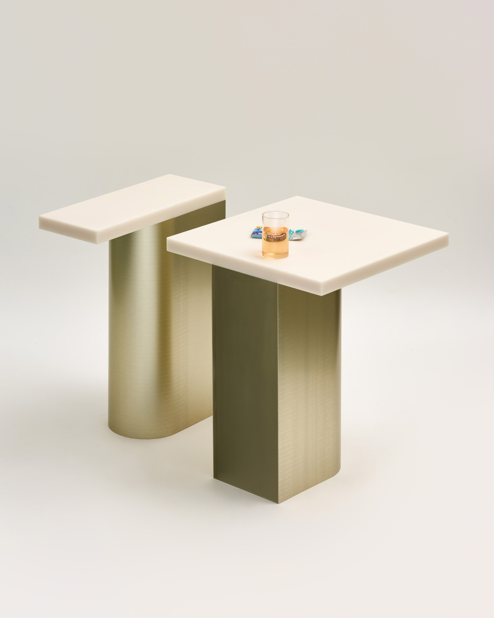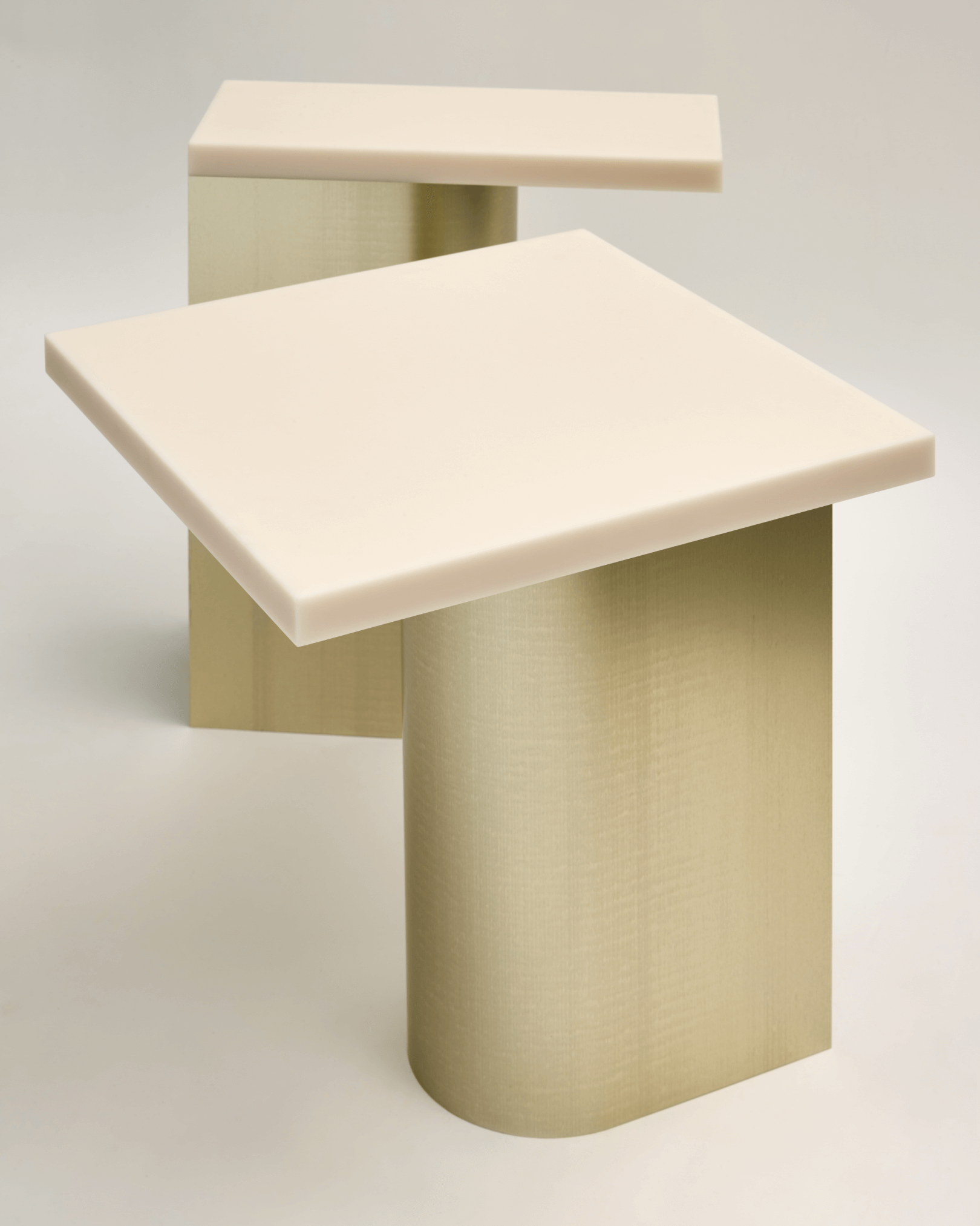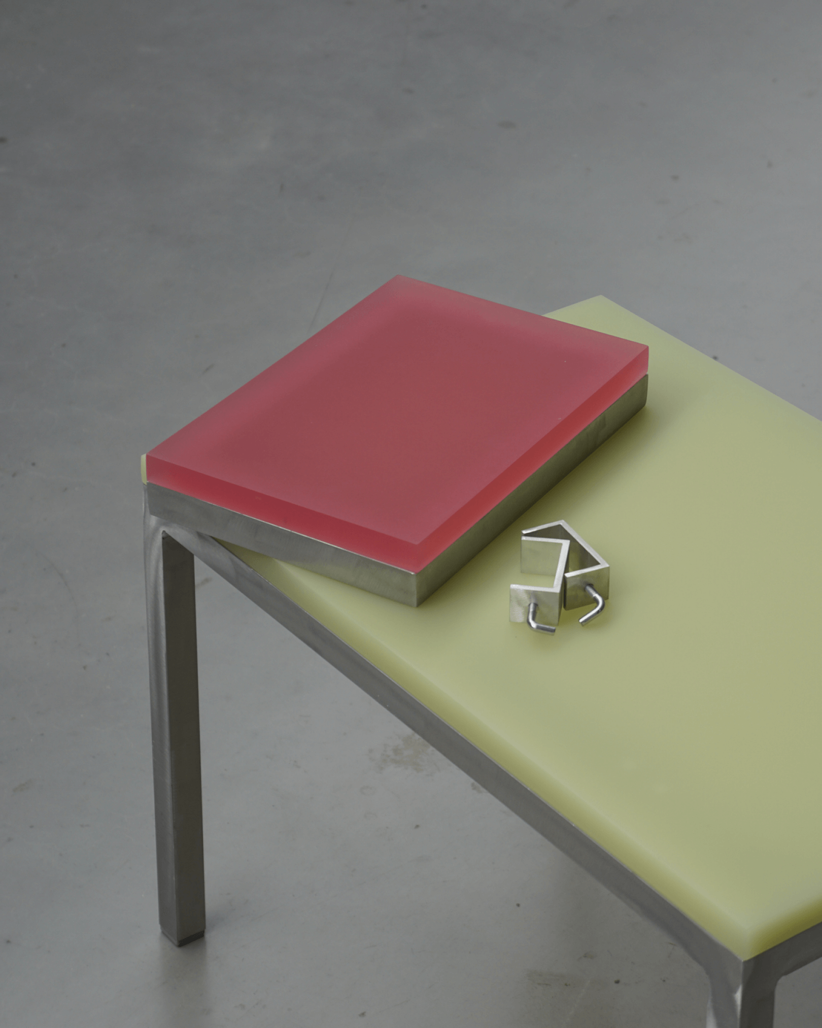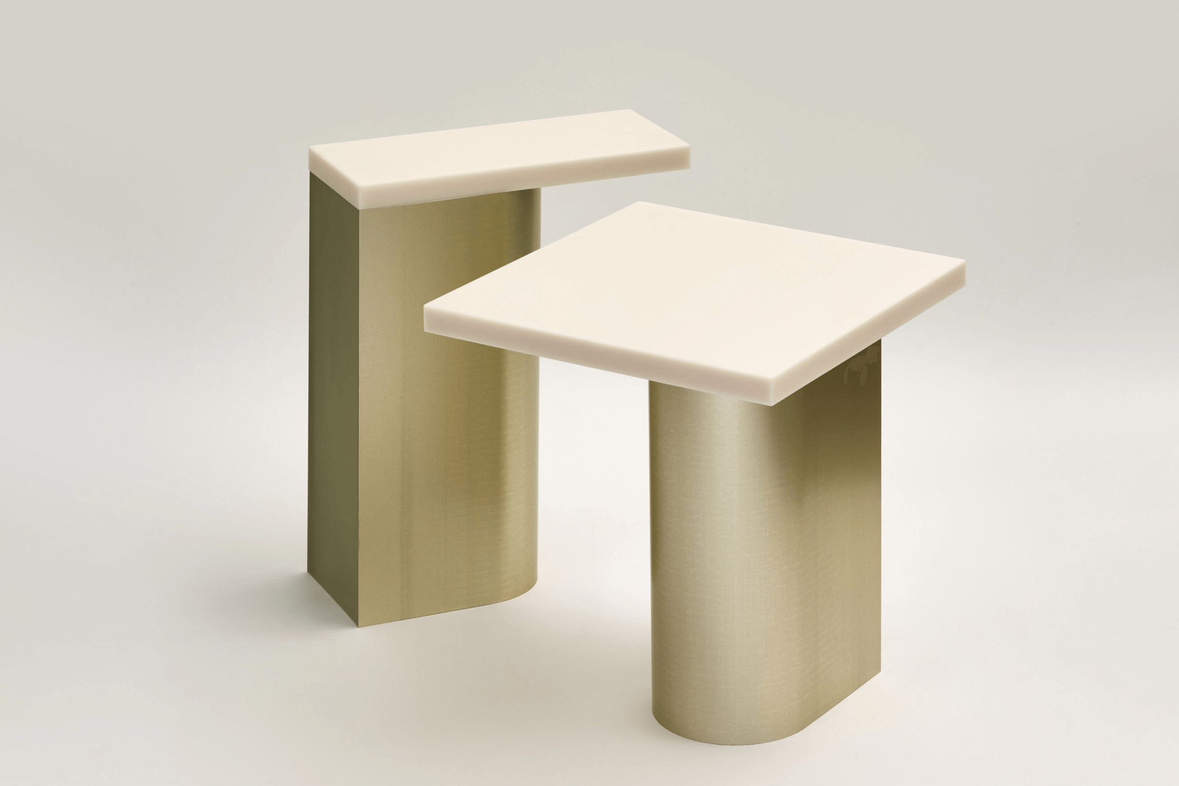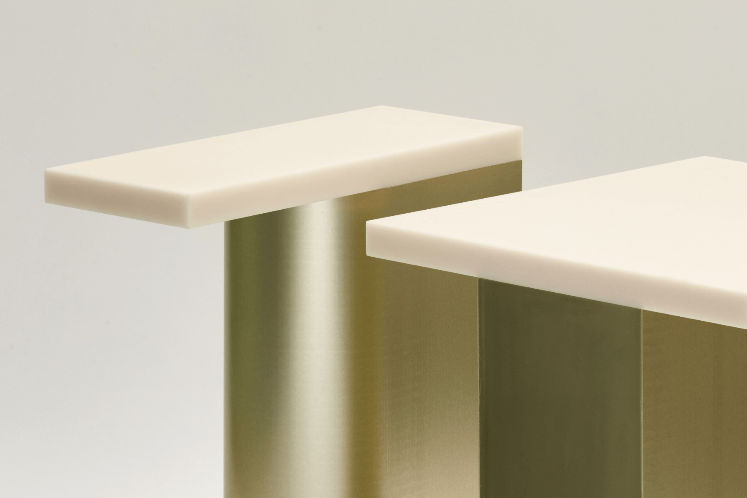 Commissioned collection including side table and bench. Combination of resin and anodised aluminium which are seamlessly joined together without visible additional elements.